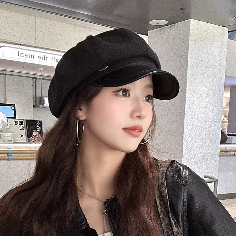 【品電嚴選】M&W圓標皮質拼接八角帽