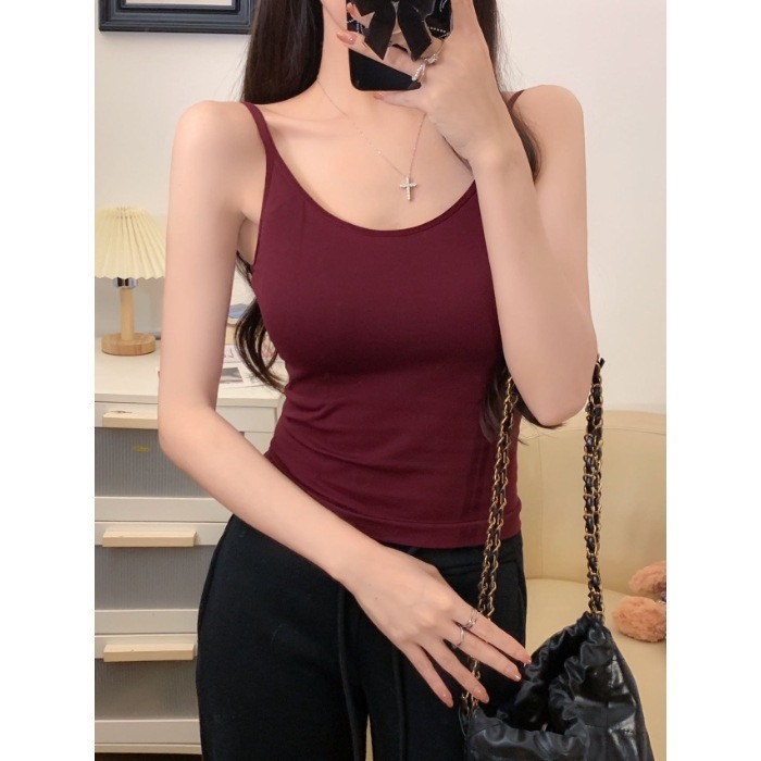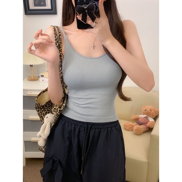 【品電嚴選】莫代爾棉質細肩帶上衣 (帶不可拆胸墊)