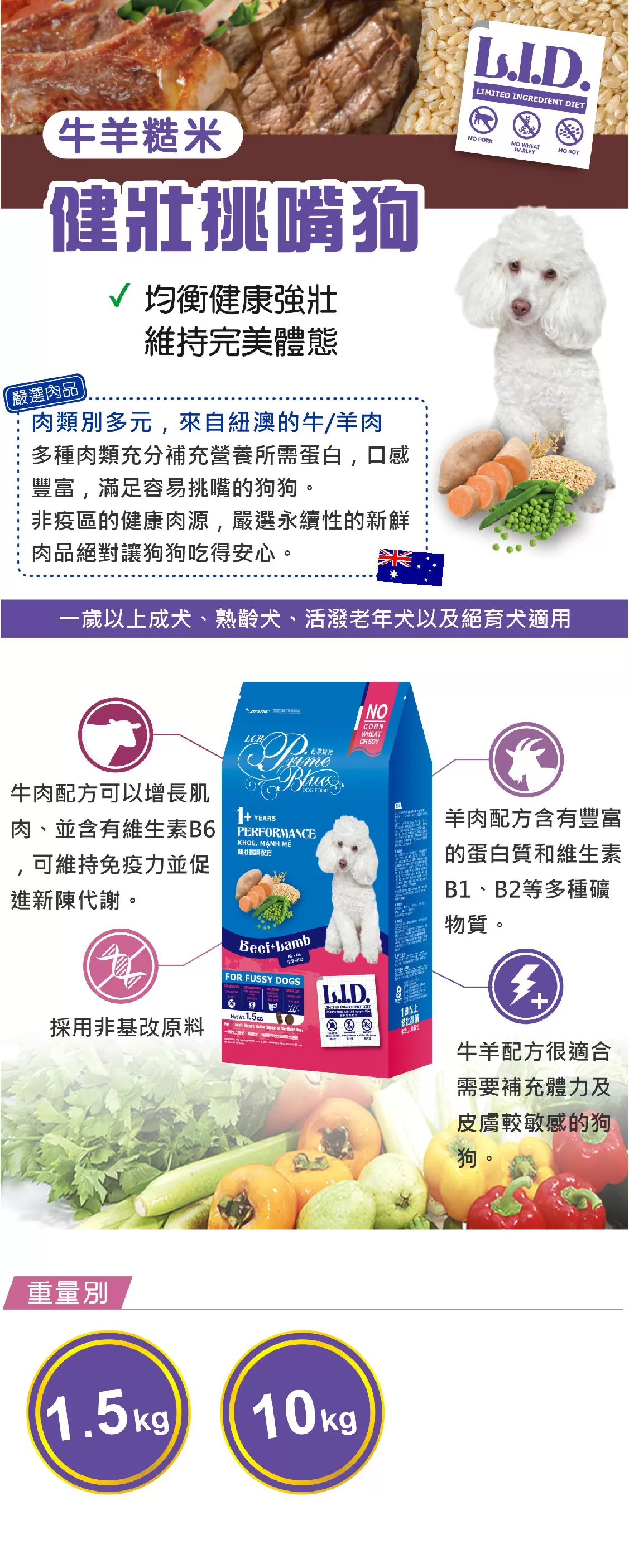 LCB L.I.D系列狗糧 挑嘴狗糧 - 健壯犬 - 羊牛配方 - 1.5KG