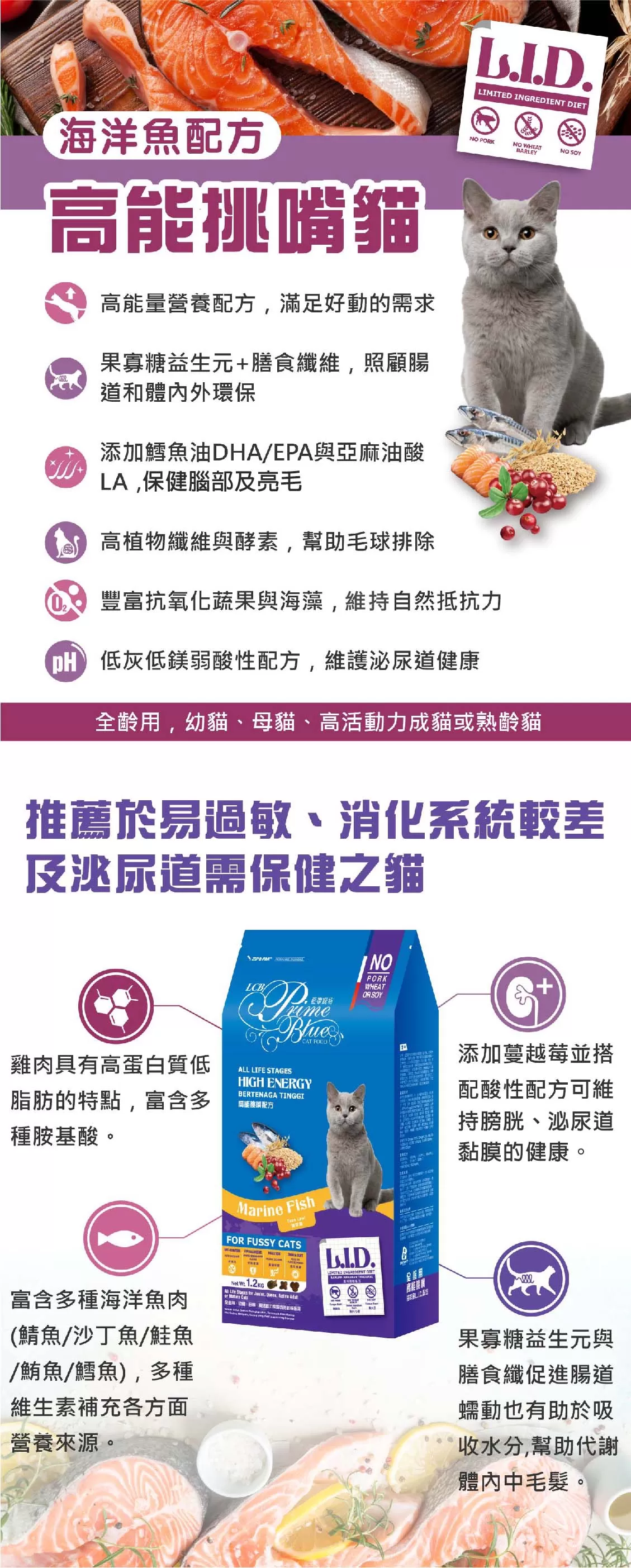 LCB L.I.D系列狗糧 挑嘴貓糧 - 高能貓 - 海洋魚配方 - 1.2KG