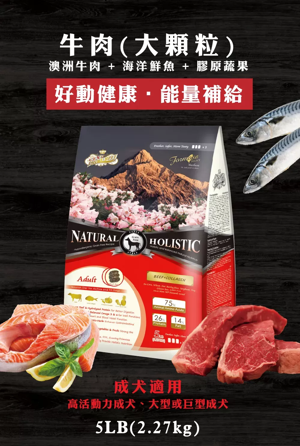 藍帶無穀濃縮天然狗糧 - 成犬 - 牛肉+膠原蔬果配方 - 5LB(2.27KG)