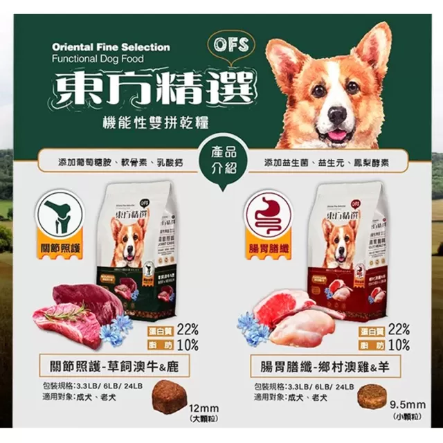 東方精選機能性狗食 - (關節照護/腸胃膳纖 )- 挑嘴配方 - 3.3LB(1.5KG)