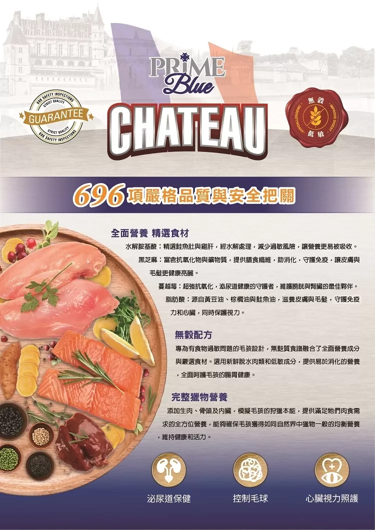 藍帶莊園無穀貓食(腸道免疫/亮毛潤膚/體態關節) 雞肉+鮭魚配方 - 1.2KG