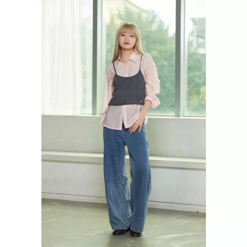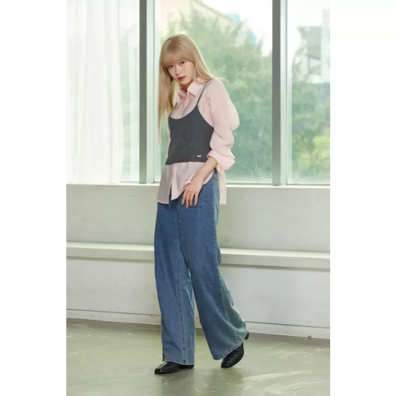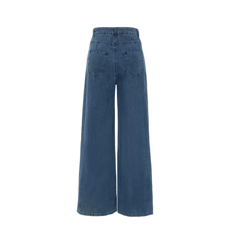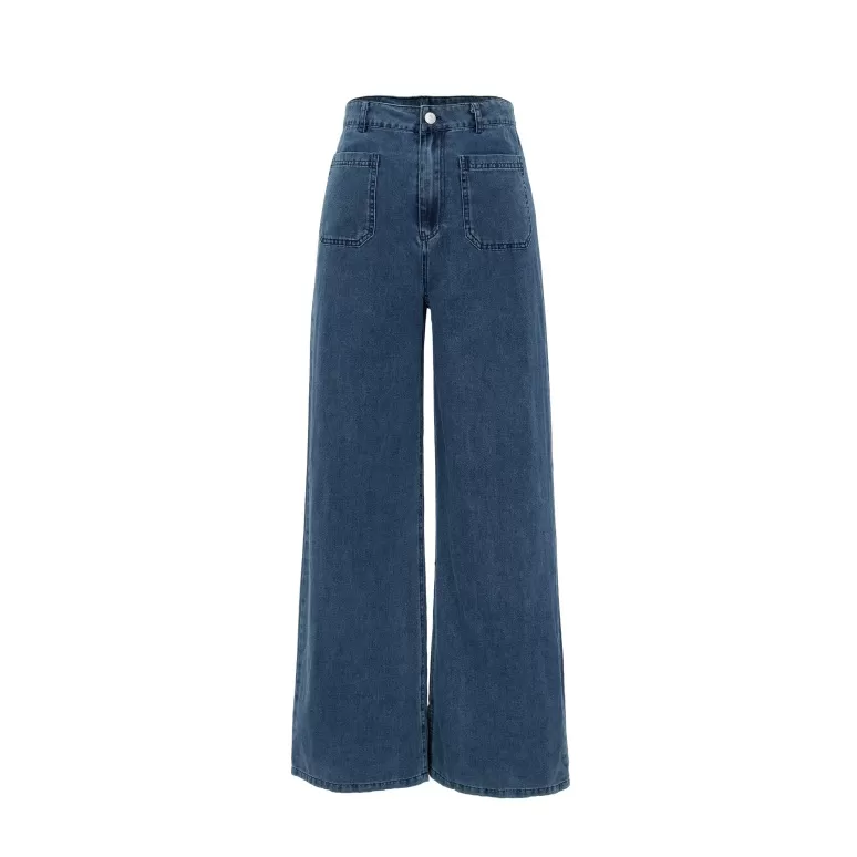 【Marjorie】蔚藍 造型口袋牛仔寬褲 牛仔藍