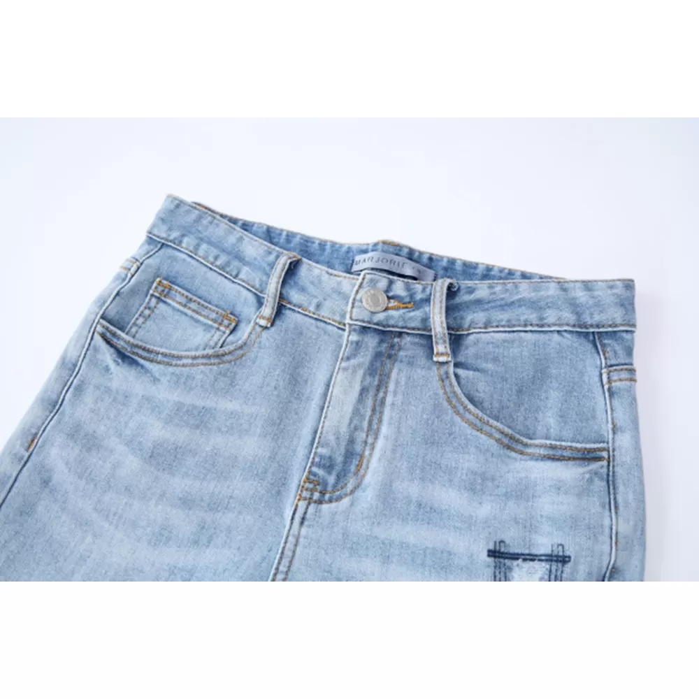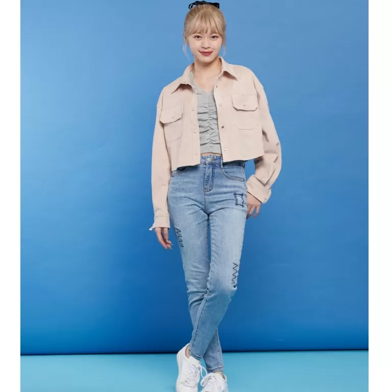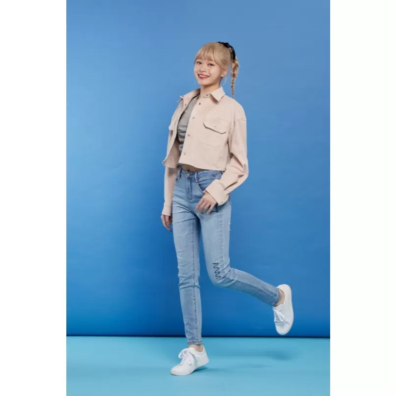 【Marjorie】分道揚鑣,刺繡彈性窄管牛仔褲