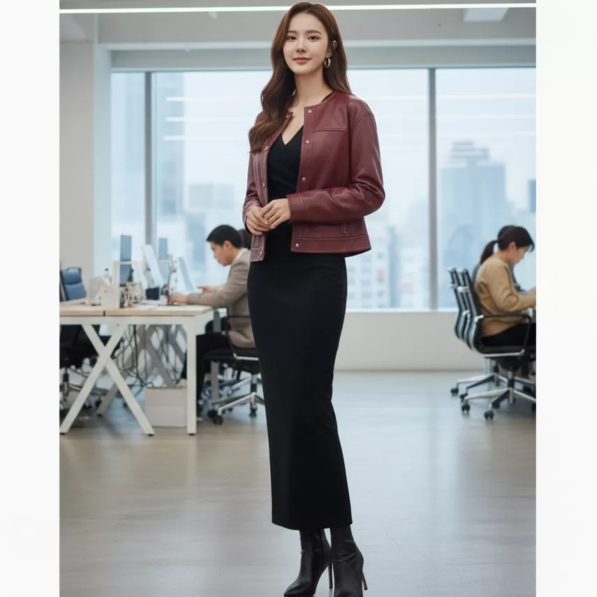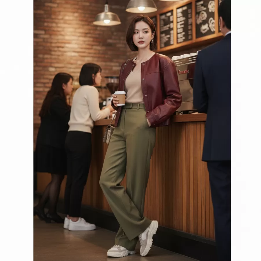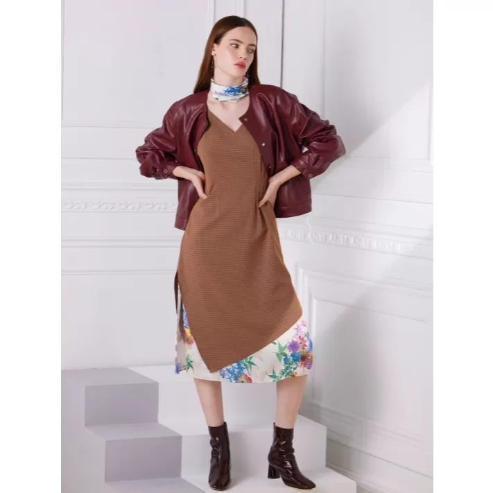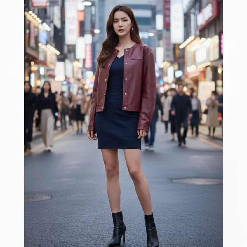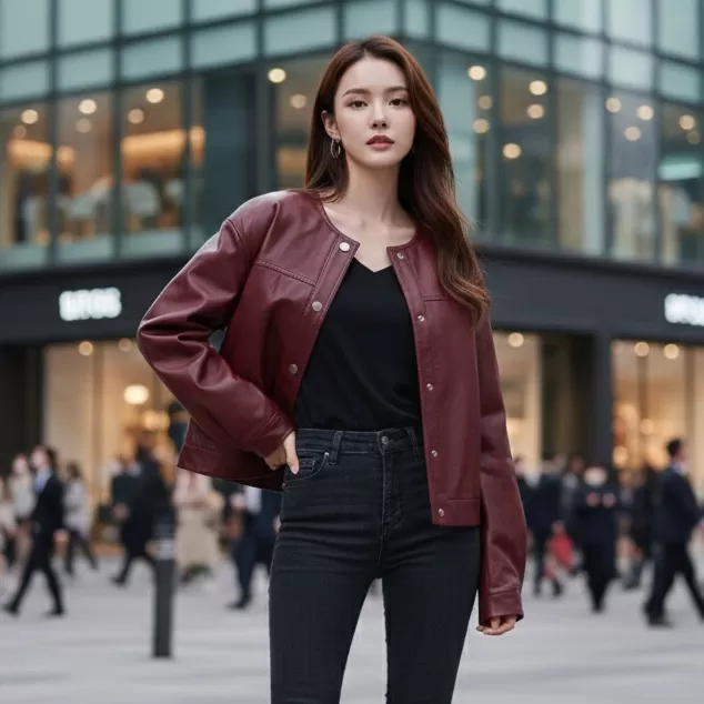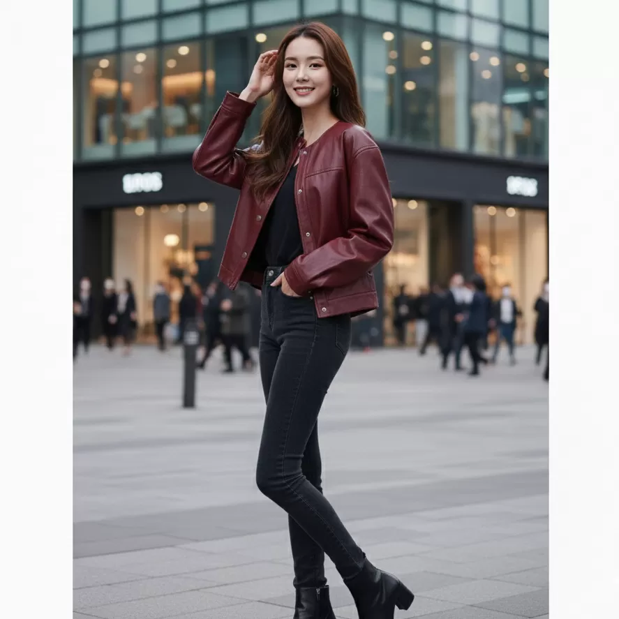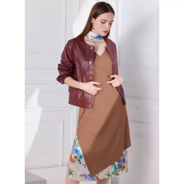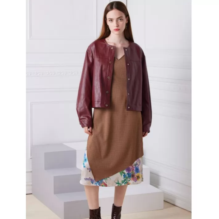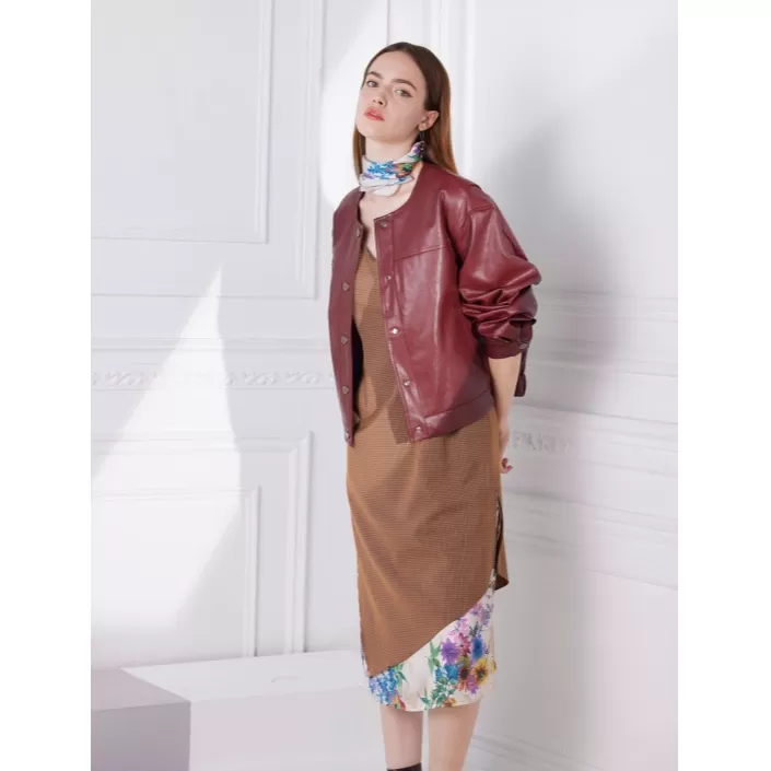 【Marjorie】陳年波爾多 圓領皮衣外套