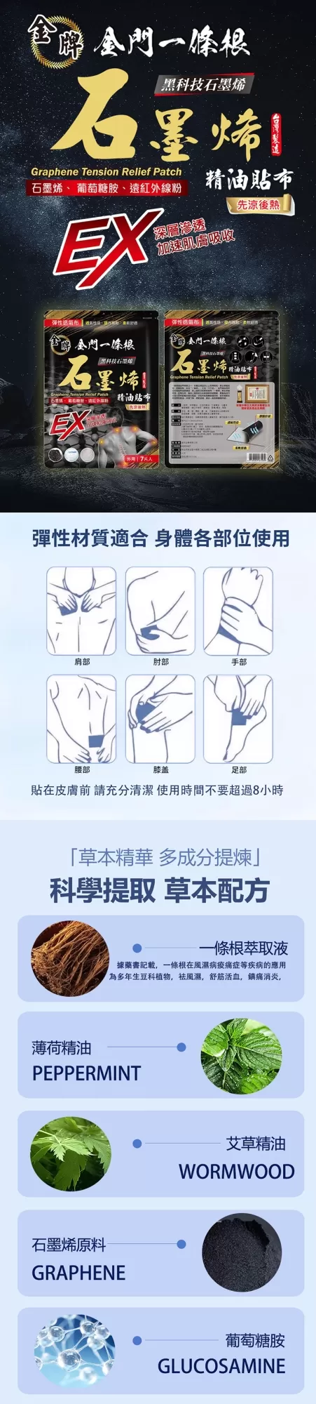 金牌一條根-石墨烯精油貼布(先涼後熱) 7片入/包
