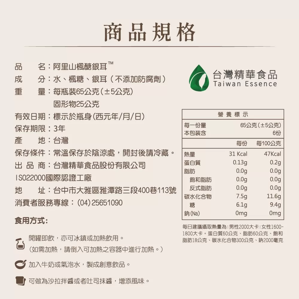 台灣精華食品-阿里山楓醣銀耳 6入禮盒組