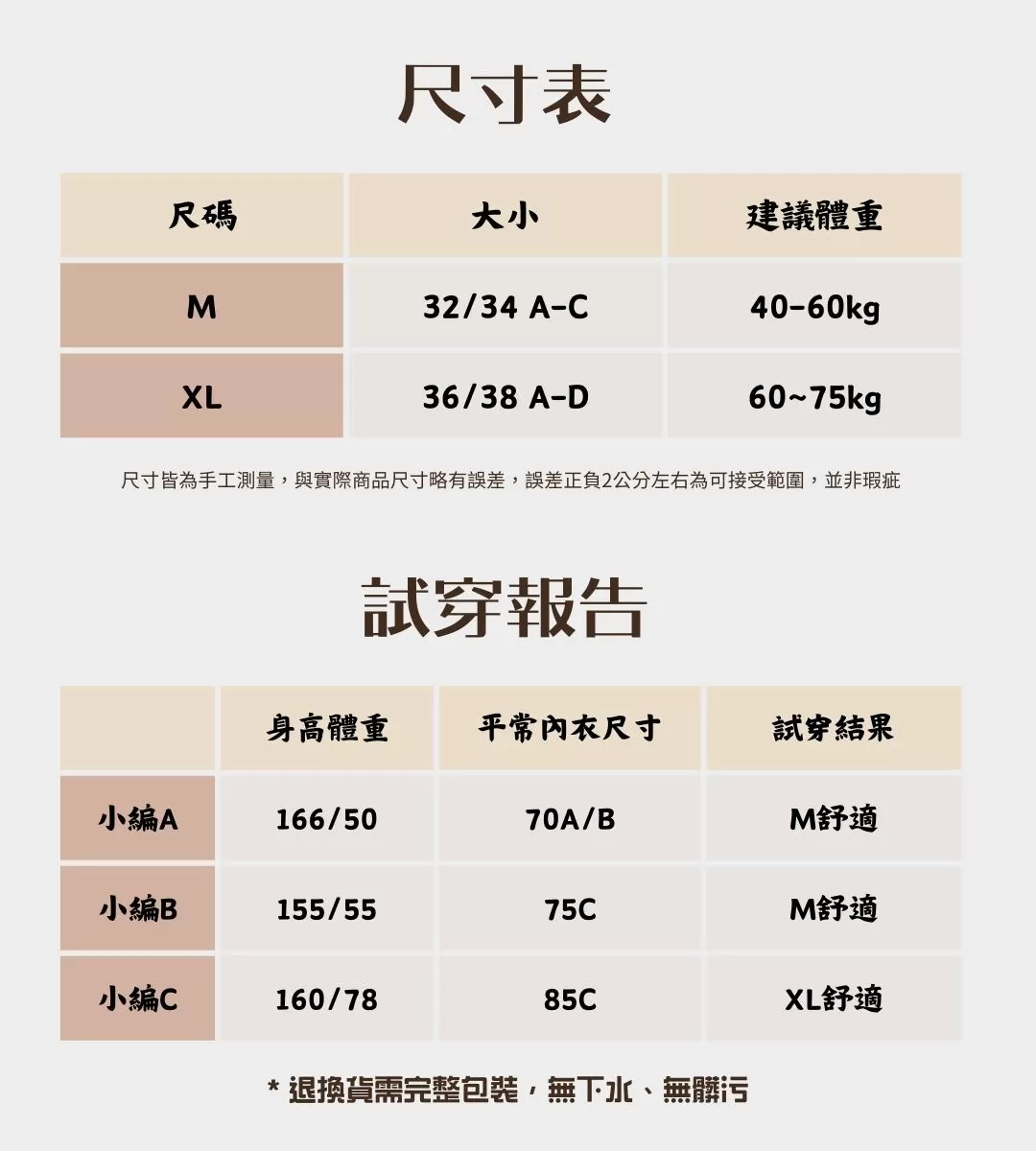 • 貼身產品因個人衛生因素,一經拆封使用過後,恕無法辦理退貨。