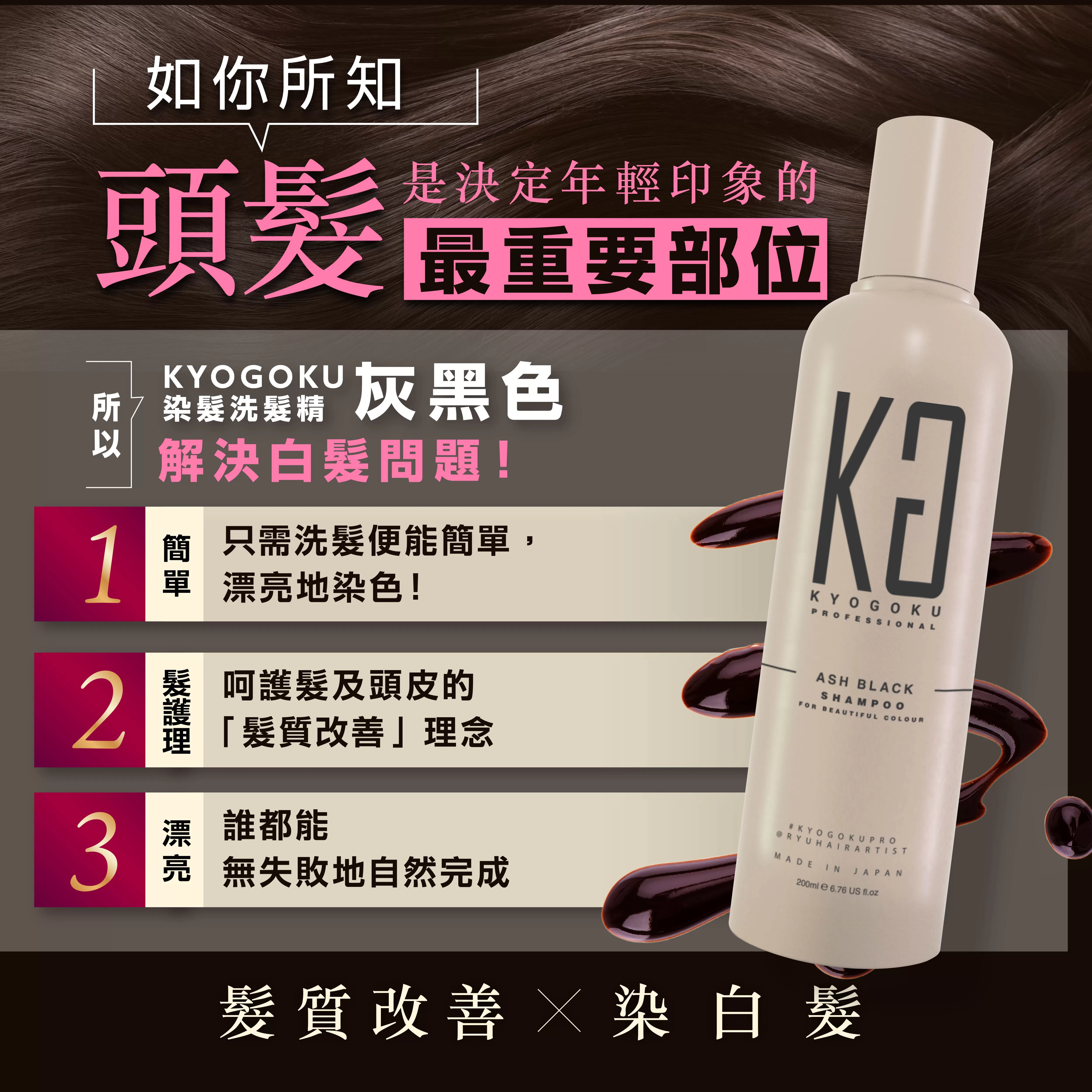 【卡雅仕】日本 KYOGOKU 蓋白髮專用洗髮精(黑色)