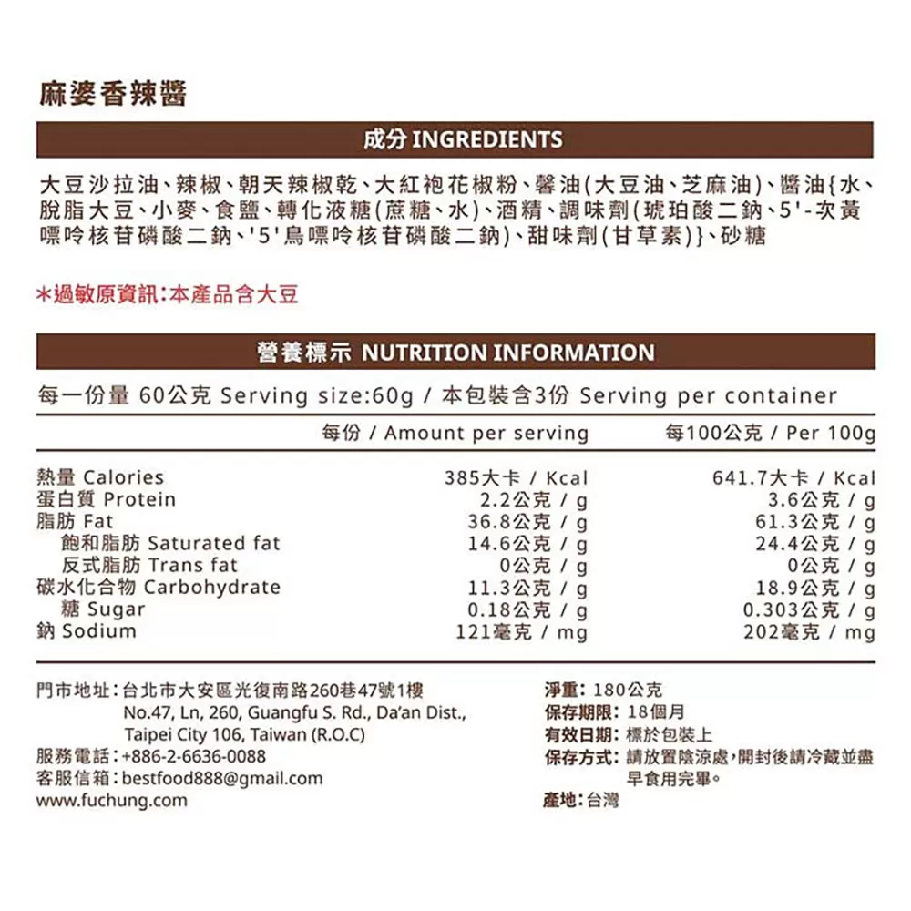 福忠字號 熱銷推薦三入醬禮盒(麻婆香辣醬x1、鮮切辣椒王x1、香蔥肉燥醬x1)