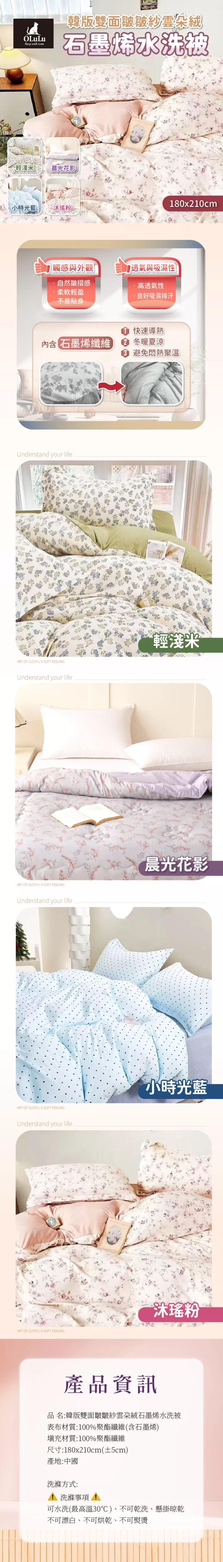 OLuLu 韓版雙面皺皺紗雲朵絨石墨烯水洗被 180x210cm