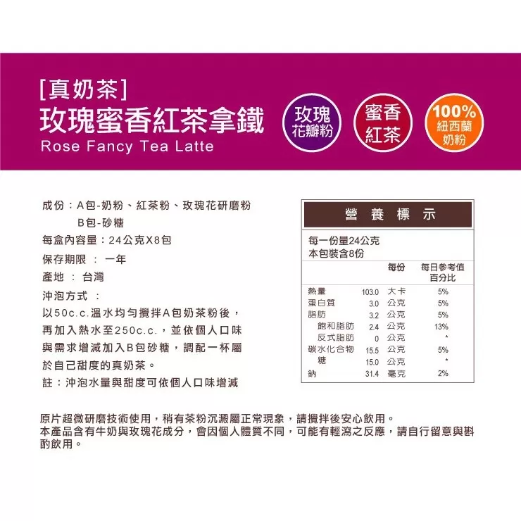 歐可茶葉-控糖系列 真奶茶 玫瑰蜜香紅茶拿鐵 8包/盒