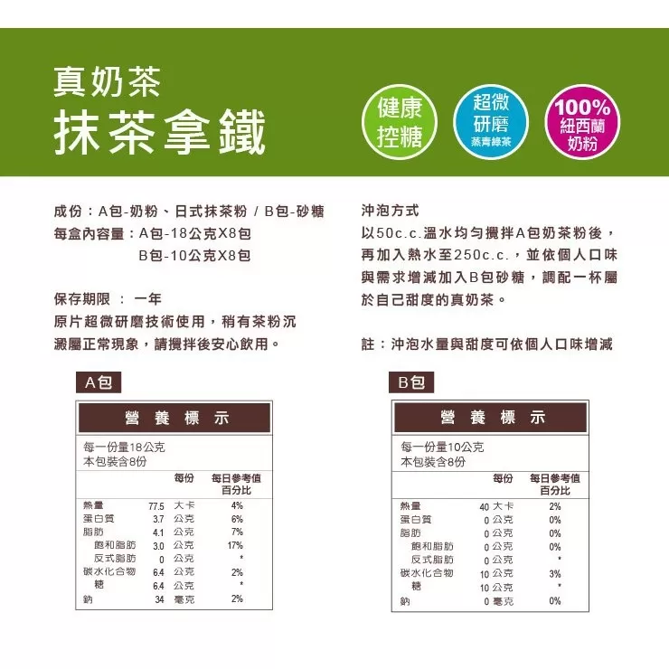 歐可茶葉-控糖系列 真奶茶 抹茶拿鐵 8包/盒