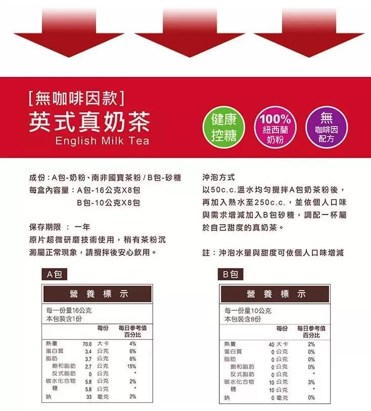 歐可茶葉-控糖系列 真奶茶 無咖啡因款 8包/盒