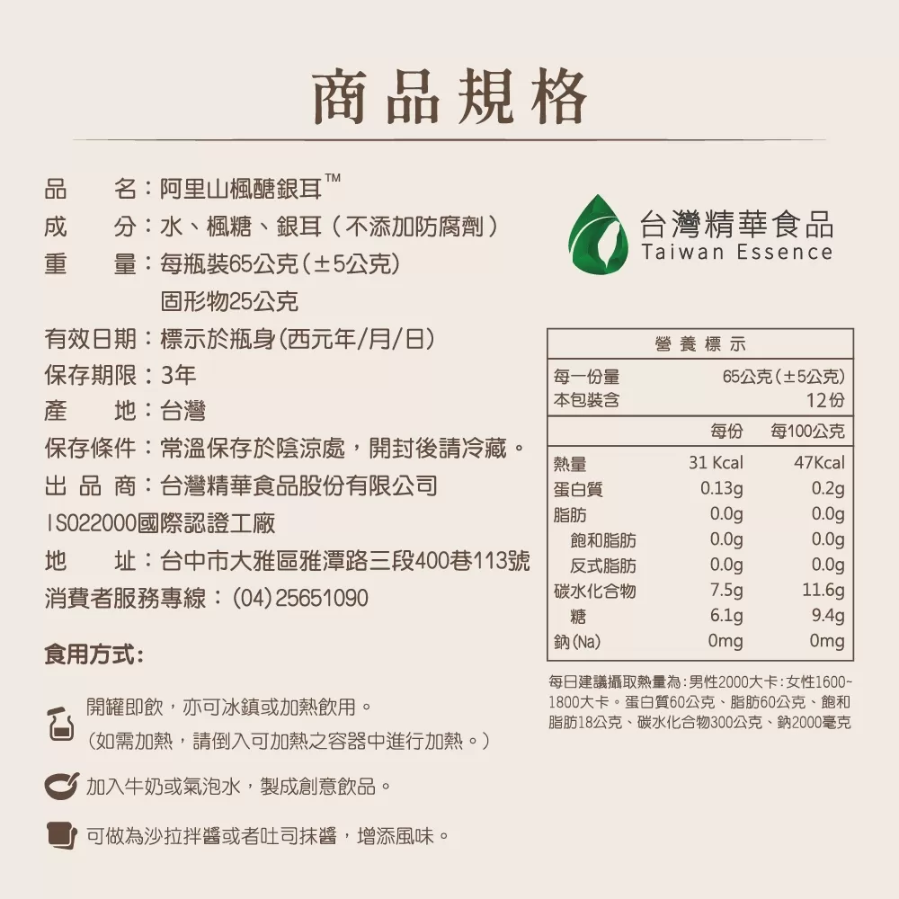 台灣精華食品-阿里山楓醣銀耳 12入禮盒組